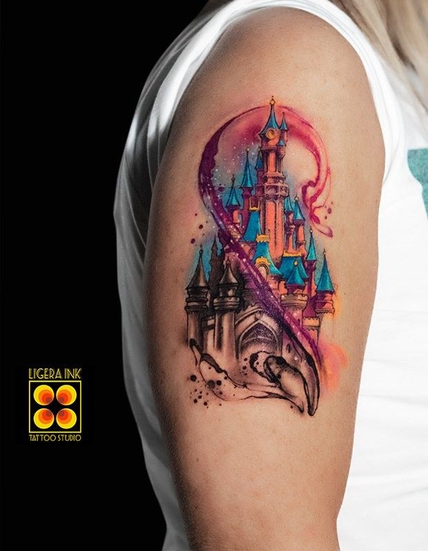 Just think of a popular theme such as the hot air balloon, which in the watercolour style takes on a completely different representation. The black lines, which clearly circumscribe the main subject, are few while it is mainly the colours that shape the design. And it is here that the watercolour style explodes in its splendour, there is no clearly defined perimeter, the tattoo begins and ends where the splashes of colour end, giving life to almost dreamlike subjects.